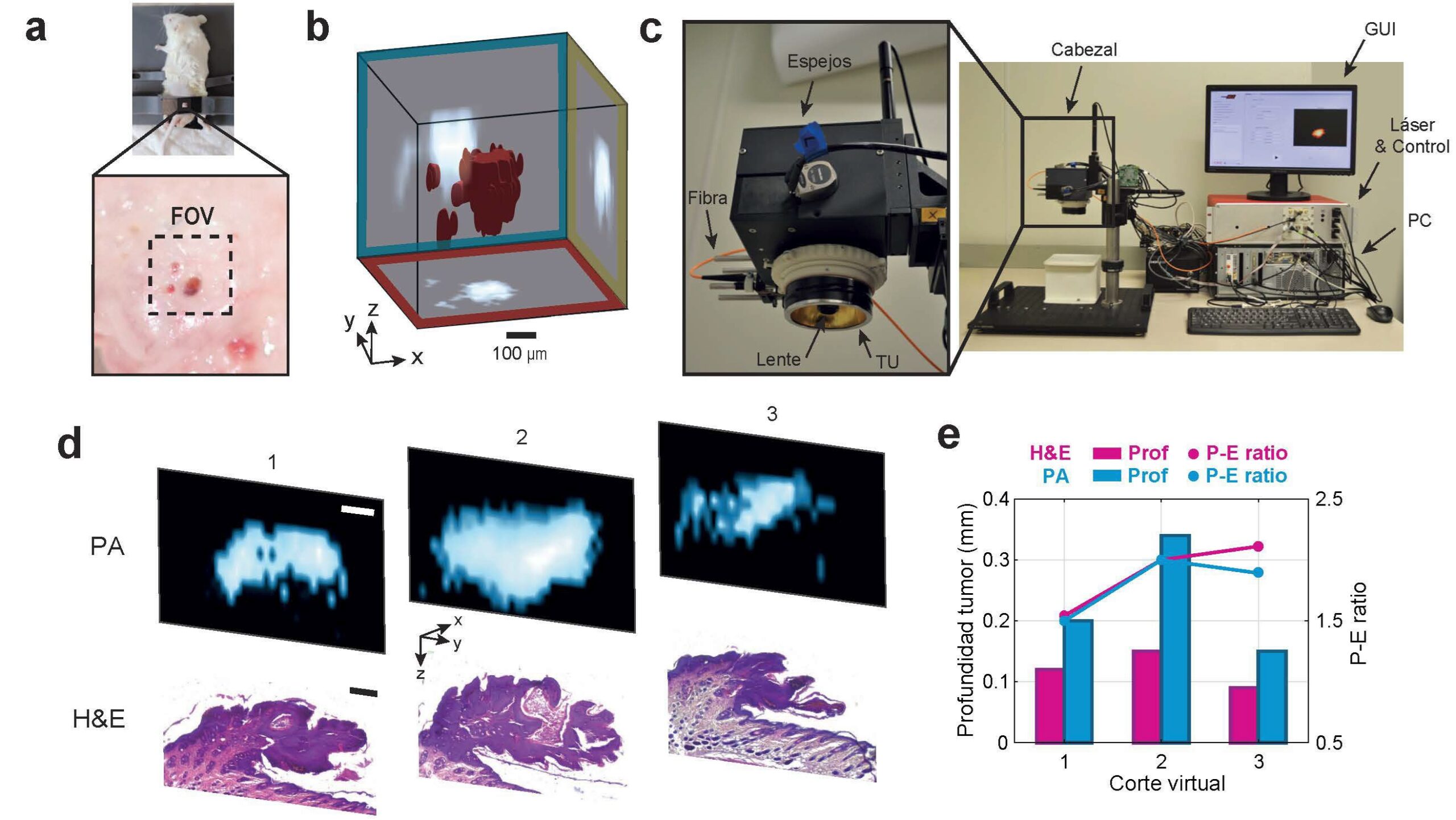 Using near-infrared (NIR) laser excitation, PAM can reveal precise details of melanoma morphology and volumetric extension in vivo, at expected depths of 2 millimeters or more, offering clinicians valuable information for preliminary staging prior to biopsy—far beyond the superficial view of conventional dermoscopy. Additionally, a secondary visible laser can excite haemoglobin for angiographic imaging of neovascularization patterns. Recent results from a cost-effective, laser diode-based photoacoustic microscopy (PAM) system tested in vivo on mice have been published in the journal Ultrasonics in 2025.